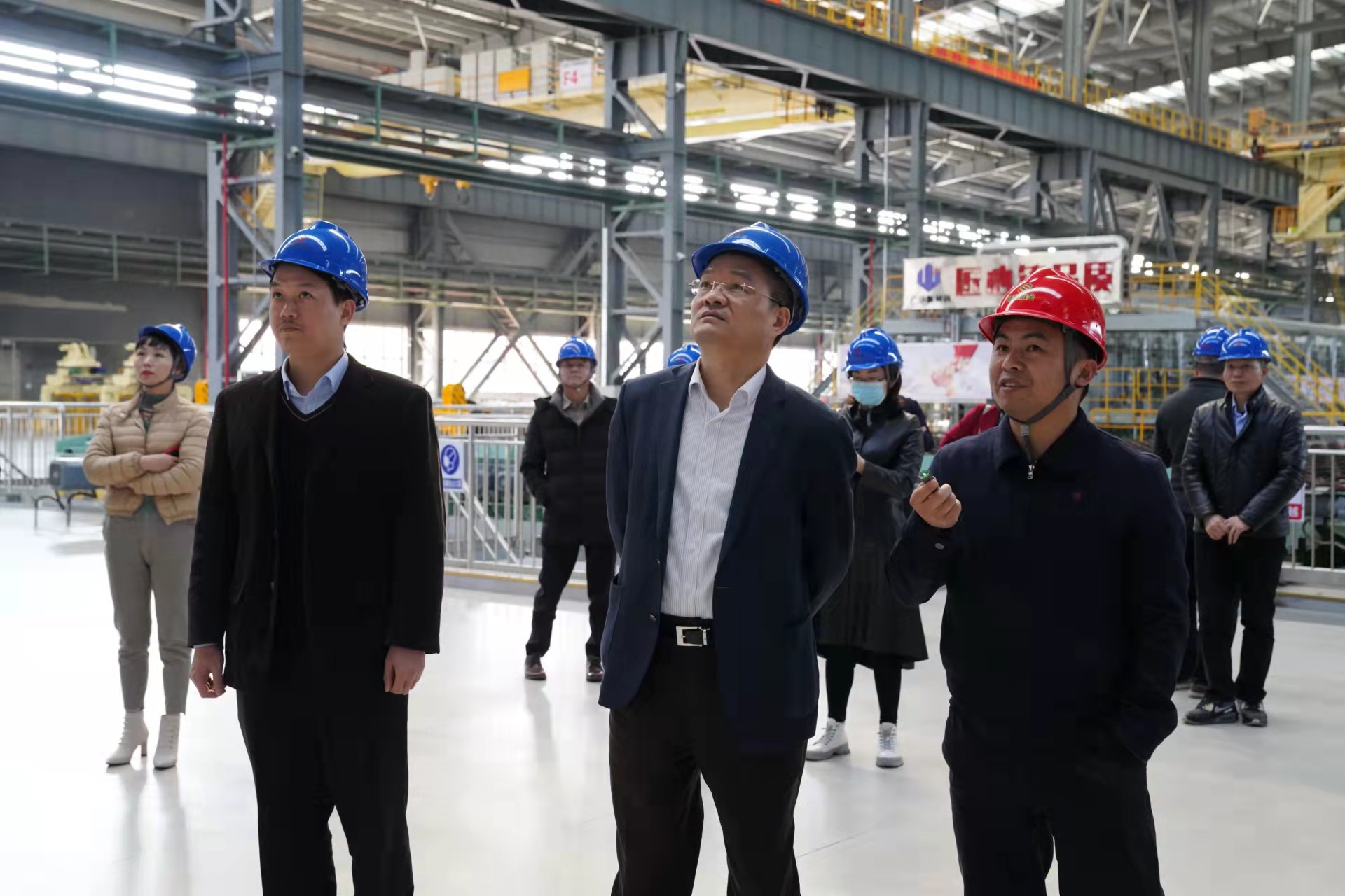 2022年2月23日,厦门信达股份有限公司书记、董事长李植煌率队访问我司。经营总裁林能镜代表公司热情迎接并陪同参观了生产厂区。在展厅的沙盘上,林总裁详细介绍了盛隆冶金的装备情况以及未来的发展计划,随后参观了1780mm热轧卷板生产流程以及先进的高强耐磨钢生产线。